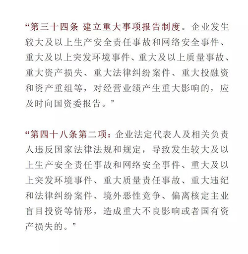 2019年3月7日,国务院国有资产监督管理委员会发布了新版《中央企业负责人经营业绩考核办法》,该办法自2019年4月1日起施行。与旧版的考核办法不同的是,新的考核办法中增加了对网络安全事件的考核要求。具体体现在新办法的第34条和48条,如下: