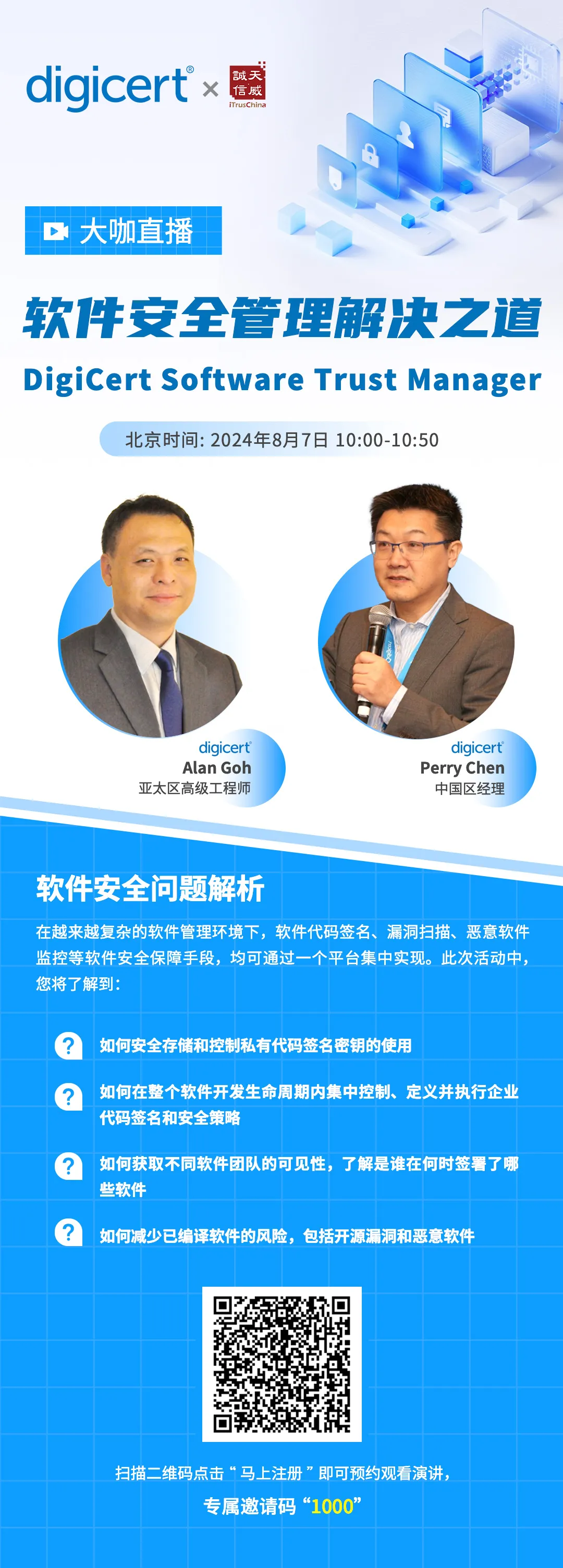 【立即行动】欲了解更多,扫描上方图片二维码访问活动页面,输入邀请码1000 注册参加!