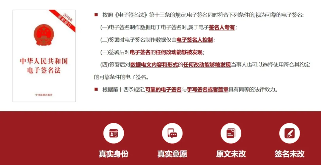 2019年,我国对《电子签名法》进行了第二次修订,明确了民事活动中采用电子签名、数据电文的文书具有法律效力。