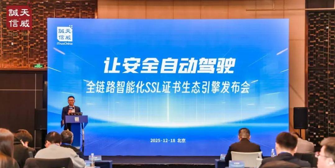 12月18日,北京——在数字信任领域面临结构性变革的关键节点,天威诚信“让安全自动驾驶·全链路智能化SSL证书生态引擎发布会”成功举办。面对CA/B论坛明确的证书有效期缩短路线图——从398天到200天,再到100天,最终指向47天——天威诚信携自主研发的「全链路智能化SSL证书生态引擎」,为行业提供了从理念到实践的完整解决方案。